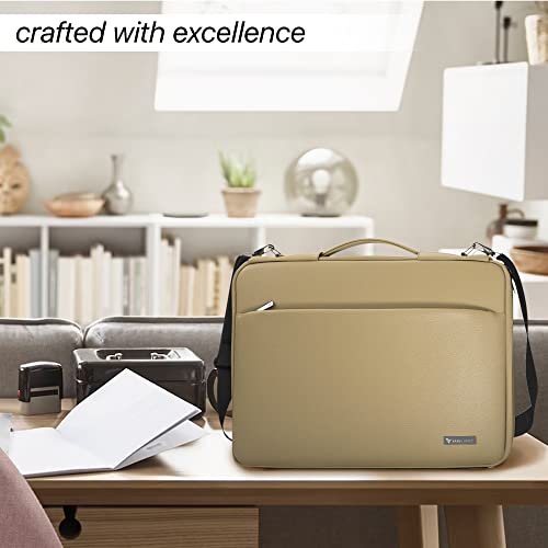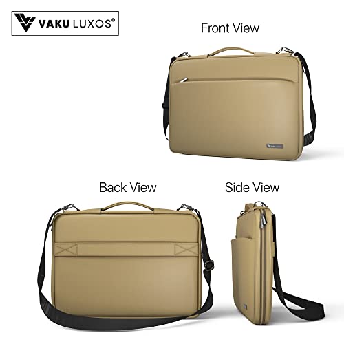 Professional Carrying Bag – VAKU LUXOS Laptop bag comes with PU Leather & Polyester adjustable strap which can be removed easily, included trolley strap makes it easy to stack this case onto rolling luggage and with 3 internal pockets for your accessories and two different compartments for your laptop, books, files and etc.