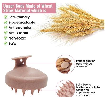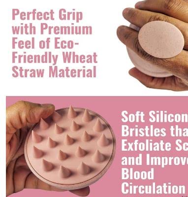 VALKYRIE Scalp Massager Shampoo Brush, Eco-friendly Wheat Straw body with Soft Silicon Bristles, Hair Scalp Scrubber, Scalp Exfoliator | Dandruff Removal, Prevents Hair loss for Men and Women | Pink (JP-35)