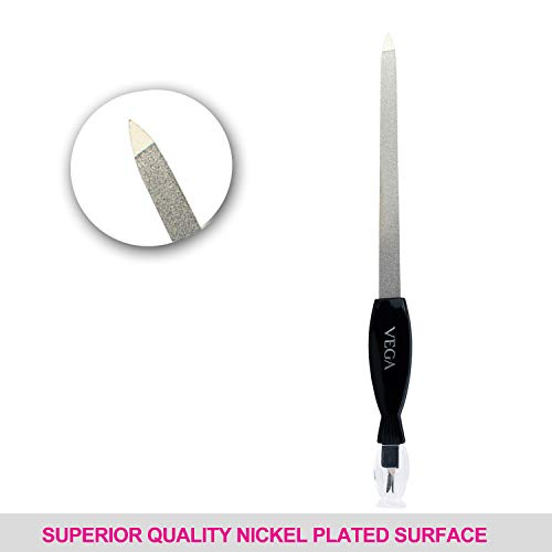 Vega nail files are your perfect ?le mate to get a salon quality manicure at home. They are designed for perfect ?ling of your nails, even out rough edges and clean under nails anytime, anywhere. Our range includes metallic, soft and glass nail ?les.