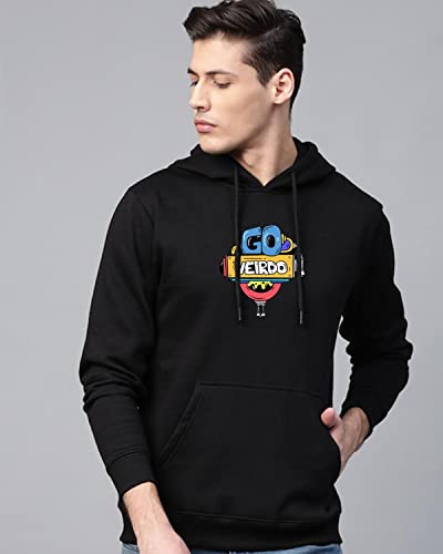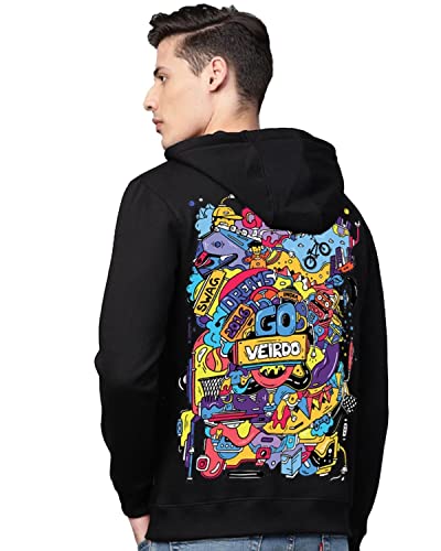 Veirdo® Cotton Fleece Regular Fit Hooded Sweatshirt Full Sleeves Doodle Graphic Printed Jumper Sweatshirt for Men/Boys