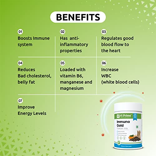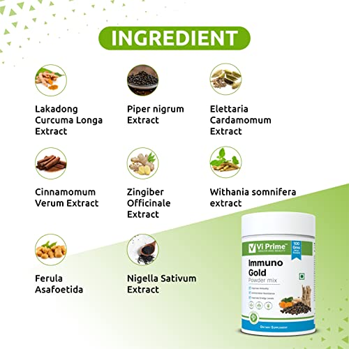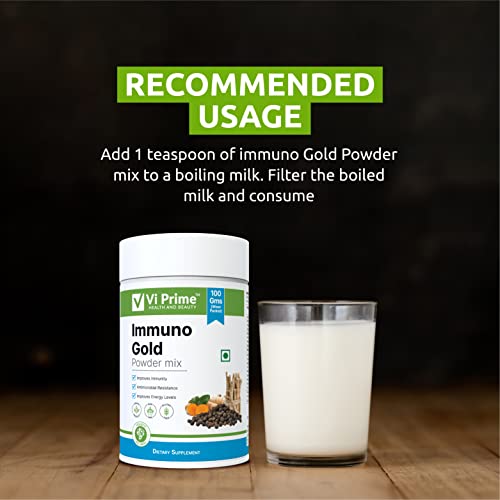 Vi Prime Health and Beauty Immuno Gold Powder, 100 gm | Enriched Golden Milk Mix | Lakadong Turmeric, Aswagandha & Black Cumin | Immune Support | Anti Inflammatory