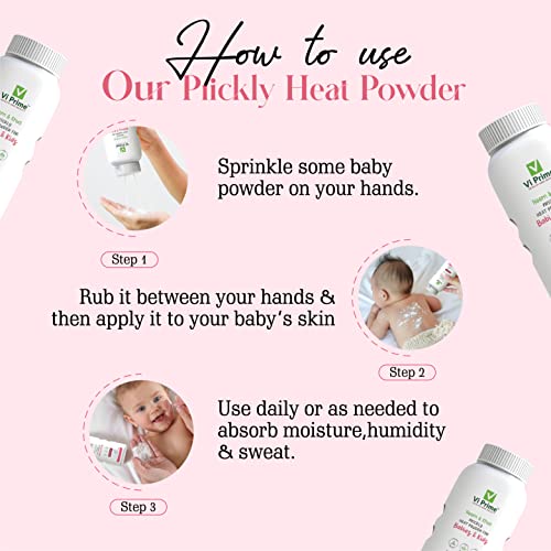 Vi Prime Health and Beauty Prickly Heat Powder for Babies and Kids with Neem, Khus Grass | Body moisturizer talc for cool summer | Absorbs Sweat from Skin Non-GMO – 100gm (pack of 2)