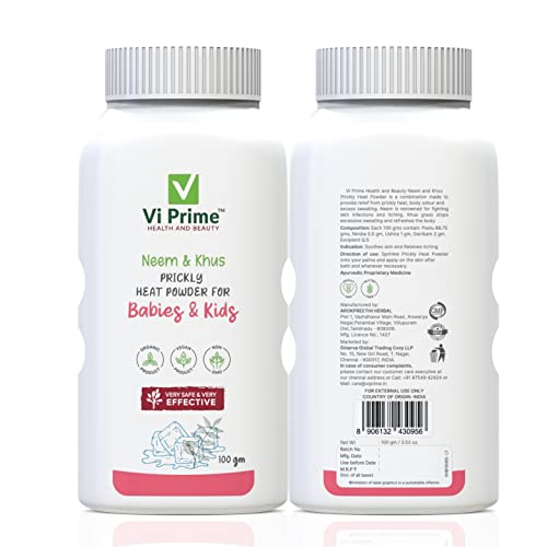 Be the first to review “Vi Prime Health and Beauty Prickly Heat Powder for Babies and Kids with Neem, Khus Grass | Body moisturizer talc for cool summer | Absorbs Sweat from Skin Non-GMO – 100gm (pack of 2)”