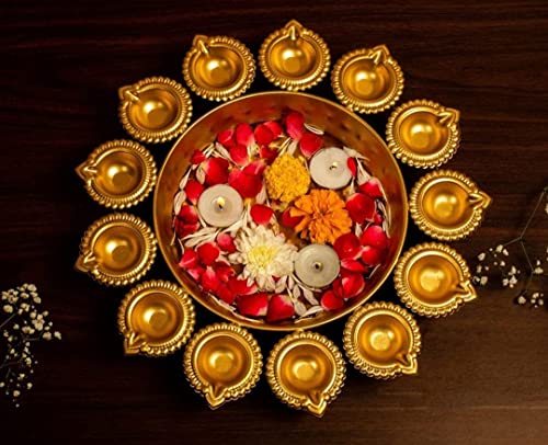 Vibgyor Products Decorative Metal Diya Traditional Lotus Urli Tealight Holder Golden