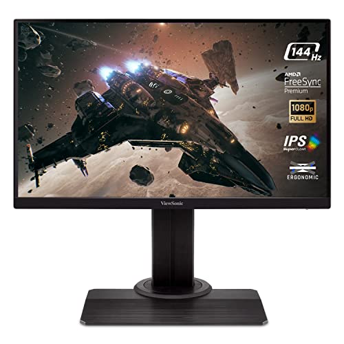 ViewSonic Omni Gaming Monitor Xg2405 24 Inch (60.96 Cm) Fhd 1920 x 1080 Pixels, IPS Panel, Frameless Gaming Monitor, 144Hz, 1Ms, 2 X Hdmi 1.4 and Dp Port Connectivity, G-Sync Enabled, Black
