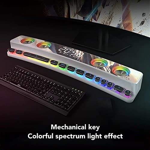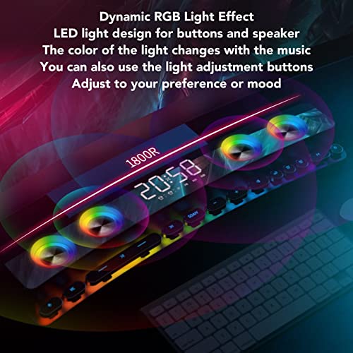 [Wide Compatibility] 19 inch slim computer speaker with and dynamic RGB light compatibility, stylish curved shape and mechanical button combination for desktop PC gaming monitors, projectors, laptops, tablets, phones.