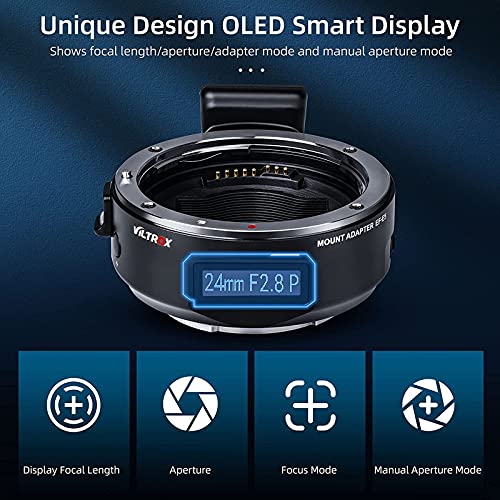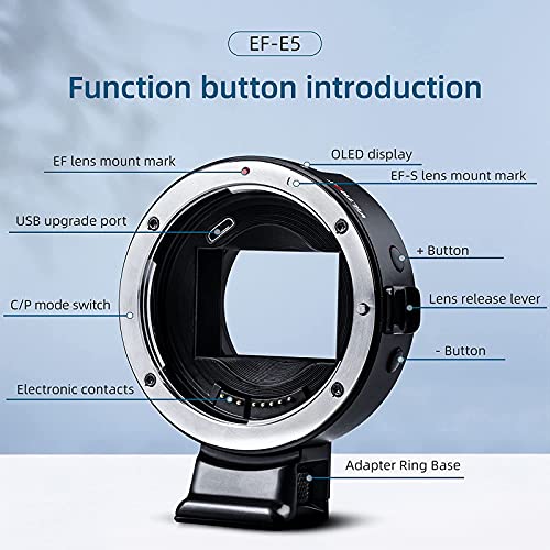 [OLED Display]: The EF-E5 has an OLED display, which can clearly display focal length, aperture, adapter ring mode and manual aperture mode on the screen