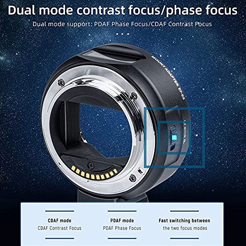 [Dual Focus Mode (PDAF & CDAF)]:The adapter ring can manually switch between two focus modes to adjust the desired focus method. The adapter ring can adjust the aperture and focal length, making the recording more comfortable