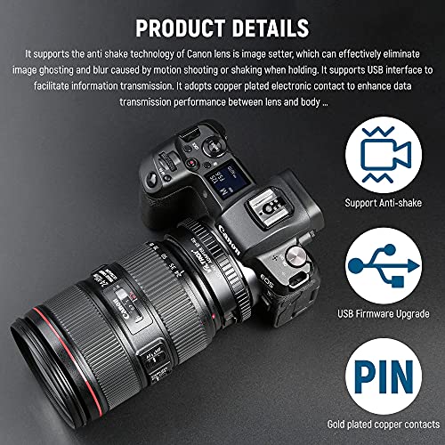 Support AUTO FOCUS, ADJUST APERTURE, EXIF SIGNAL TRANSMISSION and support IS LENS IMAGE STABILIZATION FUNCTION, effectively eliminate image blur caused by hand shake (note: Lens itself must have IS image stabilization function)