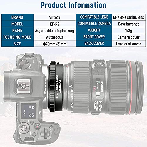 Viltrox Brand EF-R2 Auto Focus Lens Adapter Mount with Customized Control Ring for Canon EF EFS Lenes to Canon EOS R Series Cameras