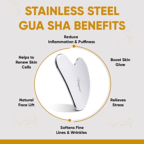 ✅ BRING OUT YOUR NATURAL BEAUTY: Uncover the radiant skin with Steel Gua Sha facial tool. By gently scraping along your skin’s surface, this scrapper promotes naturally occurring microcirculation – helps in reducing signs of aging, releasing tension, and reenergizing your metabolism.