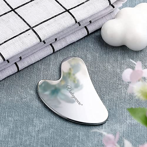 Vintageware Stainless Steel Facial Gua Sha Massager (IASTM Tool) For Face, Skin, Neck, Jaw, Eye Massage & Acupressure Therapy On Trigger Point Treatment Scraping Face Massage Tool (Heart Shaped)