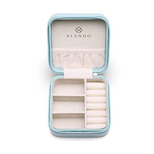 VIRTUAL WORLD (vlando) Faux Leather Travel Jewelry Box Organizer Display Storage Case for Rings Earrings Necklace , Small , turquoise