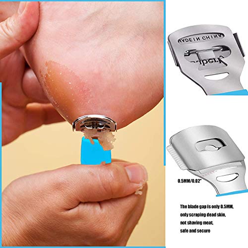 Kit includes:1* Double-sided sandpaper file,1* Square foot rasp,1* Ellipse foot rasp,1* Callous remover knife,1* Polished strip,1* Hard skin remover,1* Silicone pad,1* Pack of 5 Blades