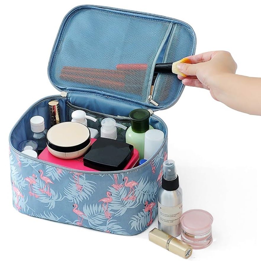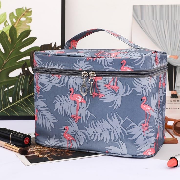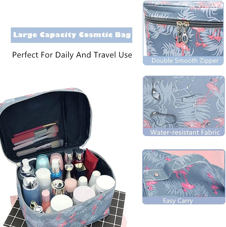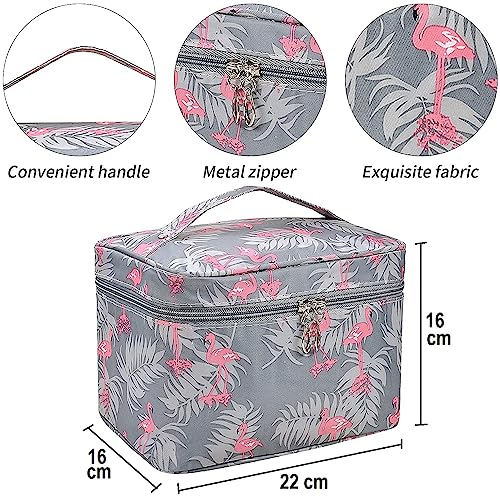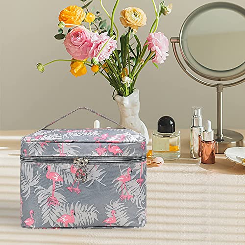 VIULVUK Professional Large Makeup Kit Organizer for Girls | Waterproof Cosmetic Bags with Big Compartment | Wash Bag & Travel Toiletry Pouch for Women’s Skincare Accessories Storage (Grey Flamingo)