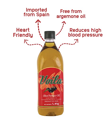 Voila Pomace Olive Oil 1L | Product of Spain | Rich in Omega 3 | For Healthy Cooking, Massage & Beauty | For Indian and Exotic cooking