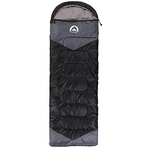 Vruta Sleeping Bag 3 Season Warm & Cool Weather – Summer, Spring, Fall, Lightweight,Waterproof Indoor & Outdoor Use for Kids, Teens & Adults for Hiking,Backpacking and Camping (Black Grey, Single)