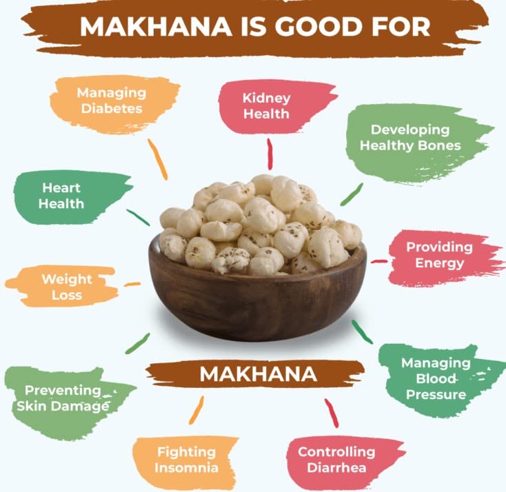 Phool makhana is an excellent snack for persons with high blood pressure or at risk of heart disease because it is low in sodium and high in potassium.