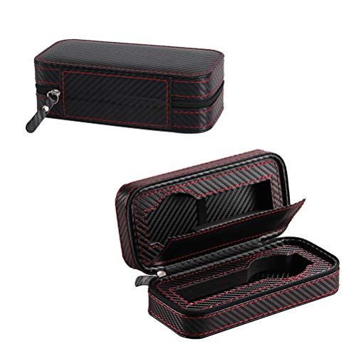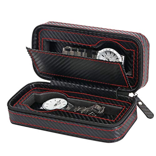 Watch Case, Portable Zippered Watch Travel Case Holder 2 Compartments Watches Interior Storage Organizer Watch Collection Travel Bag (Black 2 Watch Box Compartments)