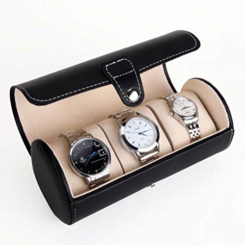 Watch Case, Travel Portable Watch Storage Box Cylinder Watch Bag Collection Box Jewelry Jewelry Storage Box (Black)