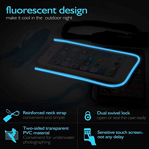 The waterproof phone pouch is made of quality PVC material, which is sturdy and long lasting to use, with 0.3 mm/ 0.01 inch in thickness, thin material can make your touch sensitive without delaying. This waterproof phone case is designed with clear windows on both sides, very suitable for taking photo, playing games, watching video etc. Giving your phone with nice water protection. The waterproof phone dry pouch not only can be applied to store cellphone, but also can be applied to store ID card, cash, MP3 player, key and other small belongings, offers nice protection for your small belongings; It is not commending that use with the phone case, and recommend that use the volume button to take photos underwater. The waterproof phone case pouch is measures approx. 20 x 11 cm/ 7.9 x 4.3 inch, compatible with almost every phones up to 6.7 inches. The cell phone waterproof pouch features good watertight, which can use up to 30 m/ 1000 feet underwater. Three-layer safety with added Velcro protection get your cellphone tightly sealed against water resistant, sand, snow, dust, dirt, sunscreen, shock & dirty Swipe for your device while maintaining full touch screen functionality.