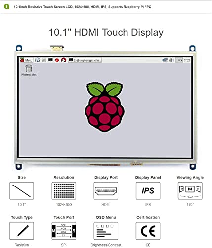 Waveshare 10.1″ Raspberry Pi Touch Screen Portable Monitor, 1024X600 IPS Mini Small HDMI Display for Raspberry Pi 4 3 2 Zero B+ Model B Xbox PS4 iOS Windows 7/8/10,
