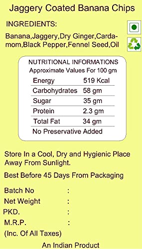 We Care Eco Products Jaggery Coated Banana Chips | Sharkara Varatti Upperi Ready to Eat Easy Snacks | Namkeen Tea Time Healthy Gud Coated Kela Chips (350)