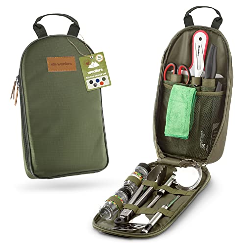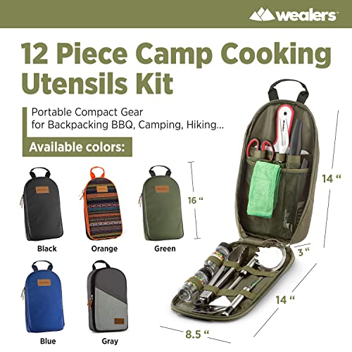 Wealers Camp Kitchen Utensil Organizer Travel Set Portable BBQ Camping Cookware Utensils Travel Kit Water Resistant Case|Cutting Board|Rice Paddle|Tongs|Scissors|Knife and Bottle Opener
