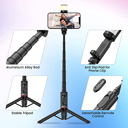 WeCool S4 Selfie Stick, Bluetooth Selfie Stick with Light,6 Shades (3 Colors and 2 Tones), Capture Your Photos and Videos in Next Dimensions, Stable Tripod Stand Useful for Makeup, Selfie, Vlogging.