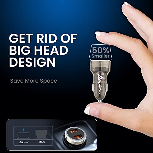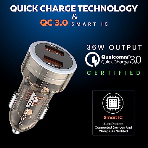 WeCool Smart 36W Fast Car Charger with Dual USB Port, Qualcomm Certified 3.0 Quick Charge Technology. Compatible with iPhone,Tablets, Smartphones Other USB Devices, Transparent