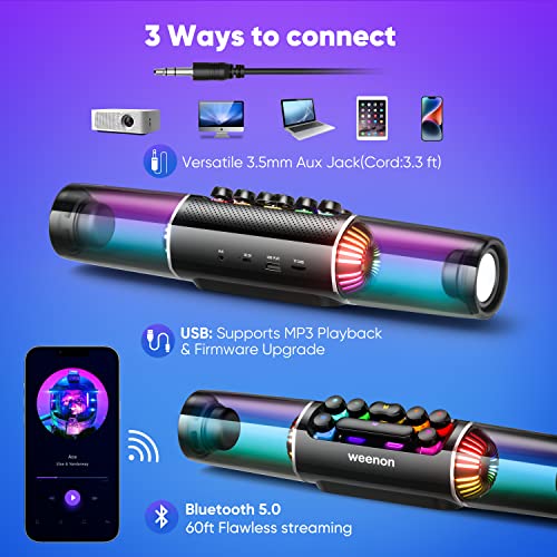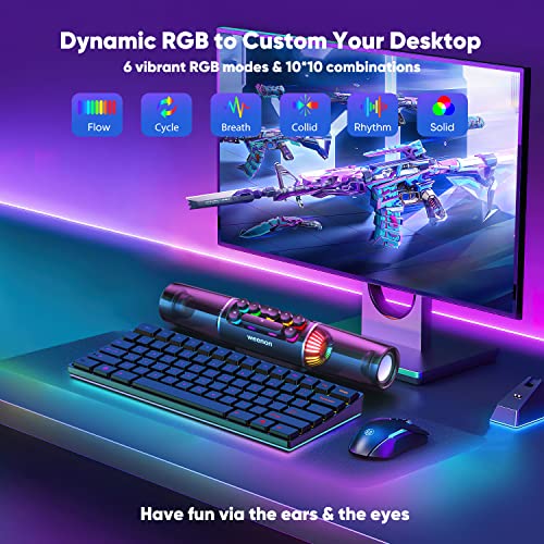 weenon Computer Speakers Sound Bar Desktop, Portable 14″ Dynamic RGB PC Speakers Gaming Soundbar Bluetooth, 16W Stereo Speaker with Subwoofer, 3.5mm AUX Battery Powered for Monitor Laptop