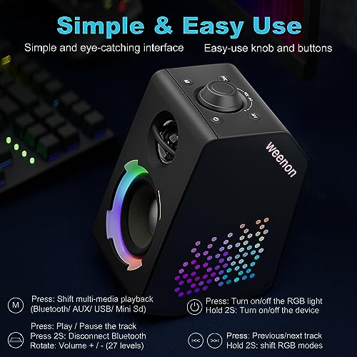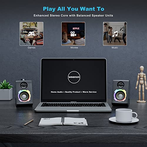 weenon Computer Speakers,24W Stereo HiFi PC Speakers with Subwoofer Bluetooth, Dynamic RGB Gaming PC Computer Speaker for Desktop PC Monitor, Laptop, 3.5mm AUX-in, USB, 12V Powered,6 LED Modes