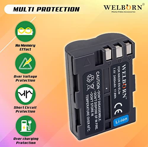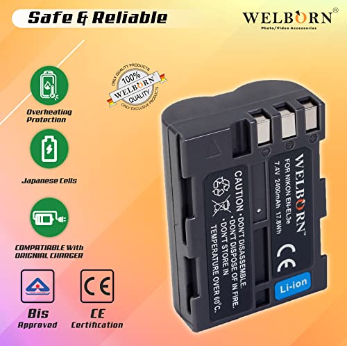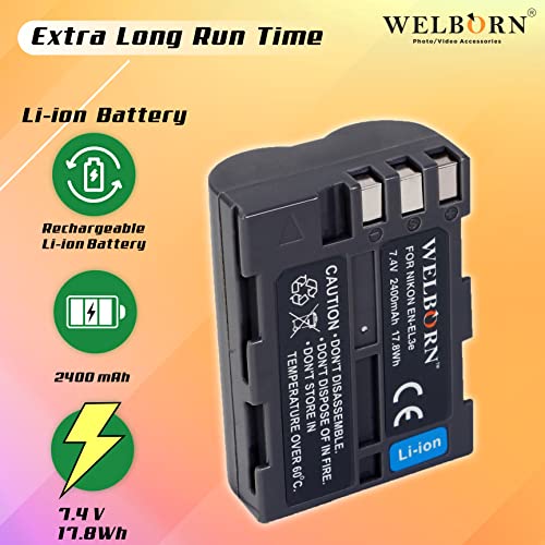 WELBORN EN-EL3 Rechargeable Battery Pack Compatible with Nikon DSLR D300,D300s,D100,D50,D40,D70,D700,D70s,D80,D90,D200