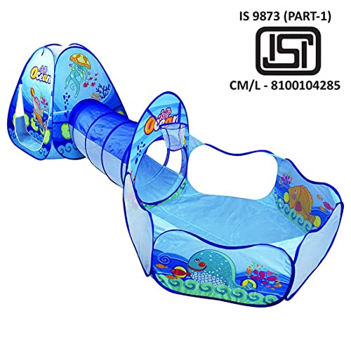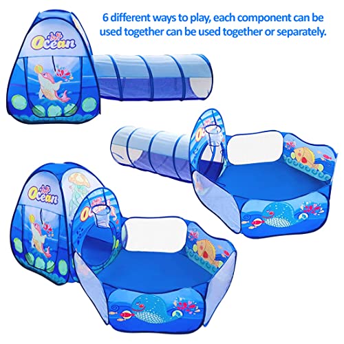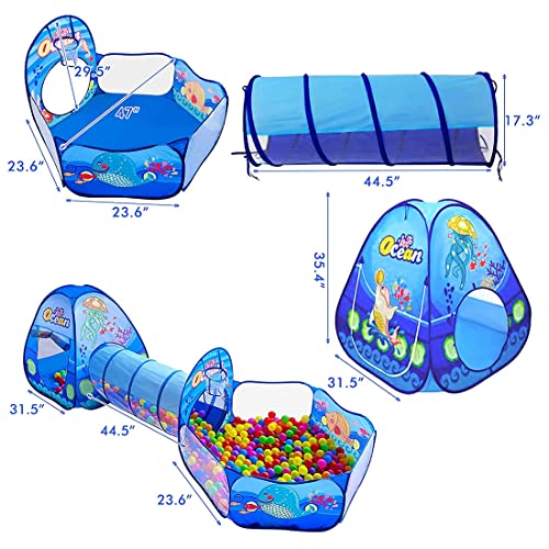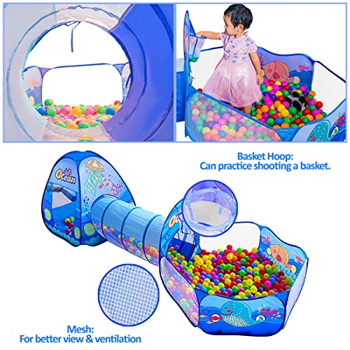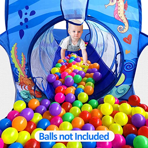 Wembley 3-in-1 Ocean Tunnel Tent for Kids with Basketball Hoop Foldable Ball Pool Baby Play Area Indoor Setup Ball Pit for Kids Toddlers Girls Boys Pop-Up Activity Outdoor Toys -Balls Not Included
