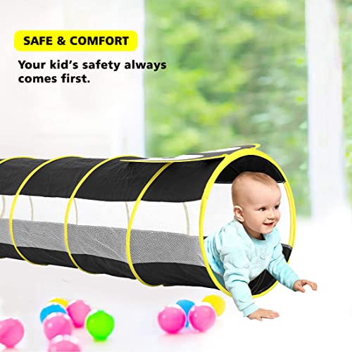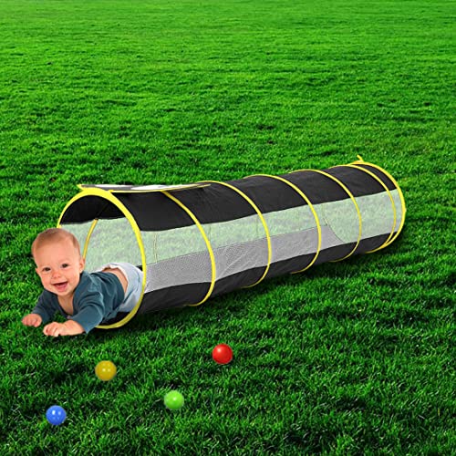 🐧Easy Assembly: There is no hustle to assemble the baby tunnel. It is easy to open with a twist and fold design having a mesh bag to carry the tunnel to the park. The entire playhouse tunnel pops up and opens in seconds! When not in use, the children’s tent can be folded into a flat form for storage.