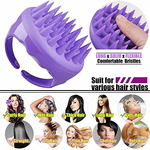 WENGONVILA Hair Scalp Massager Scrub Shampoo Brush Ultra Long Soft Silicone Bristles Exfoliating Ergonomic Scrubber Comb for Dandruff Removal, Improve Hair growth Relax Thick Curly Hair (multi)