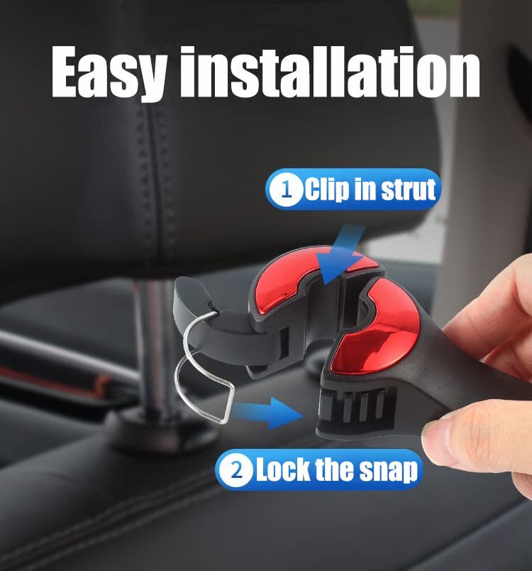 【 Easy To Install And Use】This car headrest hook is easy to install and has a side-open design that eliminates the need to disassemble the headrest. Not only can it be used for the front or rear of the seat, but it can also be easily removed when it is not needed or replaced.