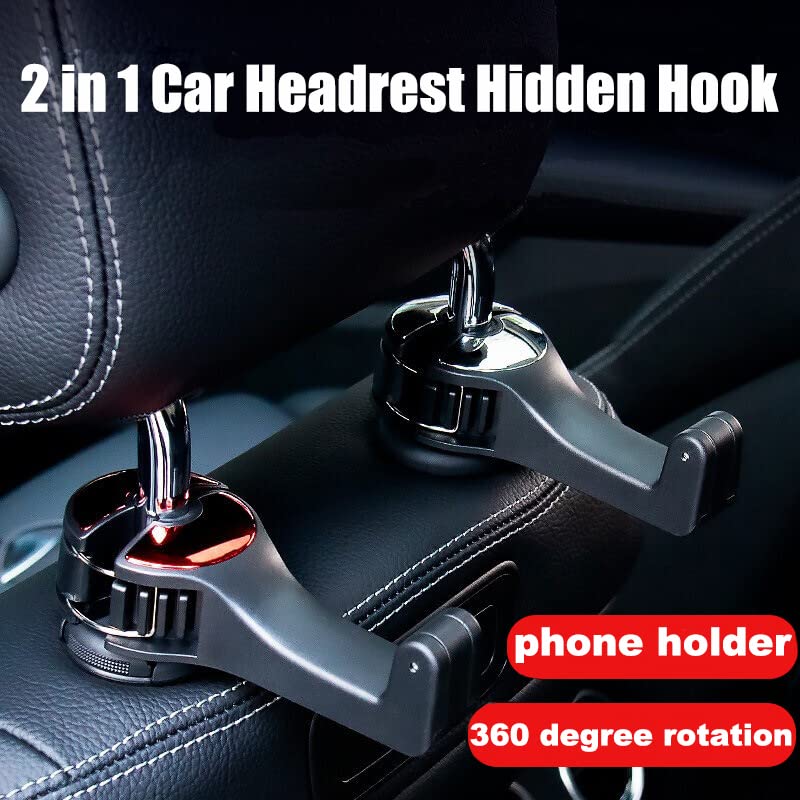 4-Packs 2-in-1 Car Headrest Hidden Hook, Upgraded Car Rear Seat Hook, With Mobile Phone Support Function, GM Rear Seat Headrest Hook, Used for Wallet,Backpack, Toy Christmas GiftR