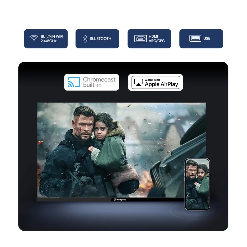 You can enjoy a theater-like acoustic experience in the comfort of your living room with Westinghouse TV’s Dolby Digital Plus technology, which provides a rich, energetic sound that brings entertainment to life. Thanks to features like DTS TruSurround sound, this TV offers excellent surround sound audio.