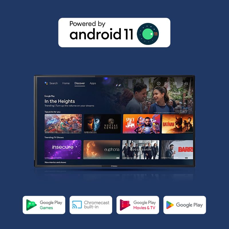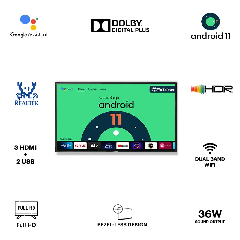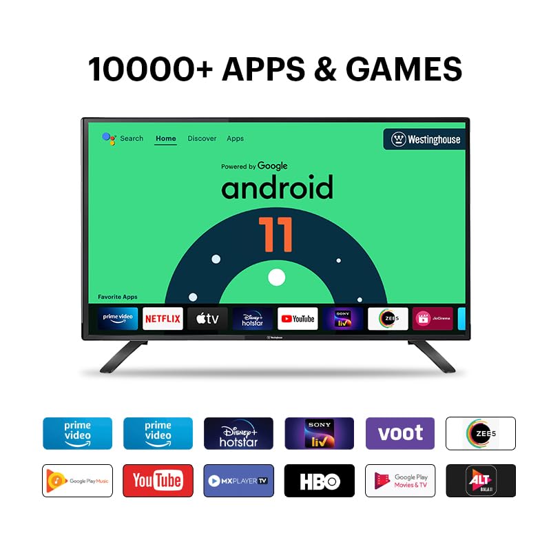 Smart TV Features: Android 11 OS | In-Built WiFi | Screen Mirroring | 1GB RAM | 8GB ROM | Supported Apps: Netflix, Prime Video, YouTube, Zee5, etc. | Google Assistant Operation