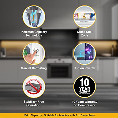 Brand Specific Features – Upto 9 hours of cooling retention during power cuts, Easy Manual Defrosting, Jumbo Storage Up To 3, 2L Bottle Storage, Insulated Capillary Technology, Auto Connect To Home Inverter, Large Vegetable Crisper, Honey Comb Lock In Technology & Quick Chill Zone