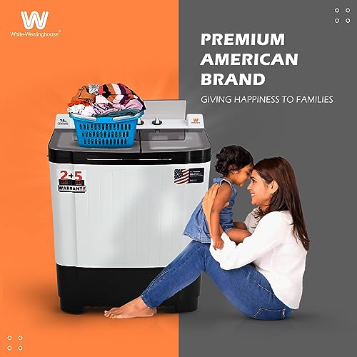 White Westinghouse 7.5 kg 3D Wash with Toughen Glass Semi Automatic Top Loading Washing Machine (SFW7500H/ BLACK/ 2023)