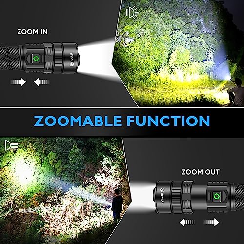 Flashlights high lumens rechargeable can generate long-distance observation floodlight or wide-range lighting spotlight by stretching the head of high powered flashlight to change the focal length and beam size.