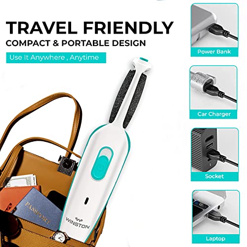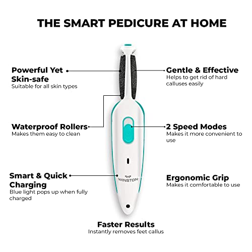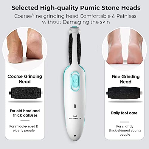 WINSTON Rechargeable Callus Remover for Feet with 2 Heads – 1 Year Warranty, Portable Callus and Dead Skin Remover Foot Callus Shaver Electric Pedicure Device, Foot Scrubber and Feet care Machine