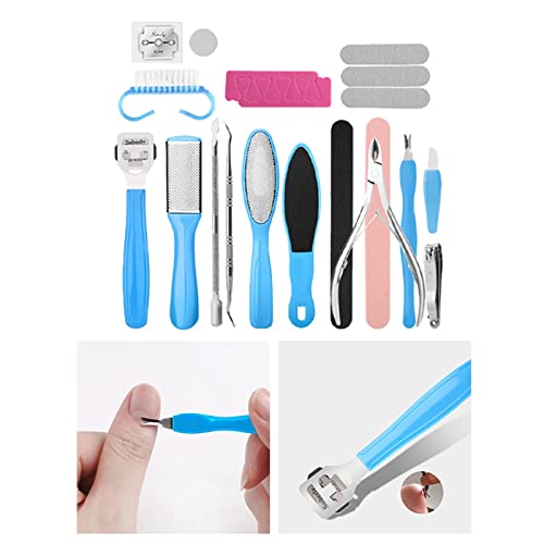 19 in 1 Foot Care Kit: Contains 19 tools with foot rasp, cuticle pusher, foot clipper, scraper, callus remover, cuticle remover, foot file, nail file, nail and toenail clipper etc, meet your different needs.