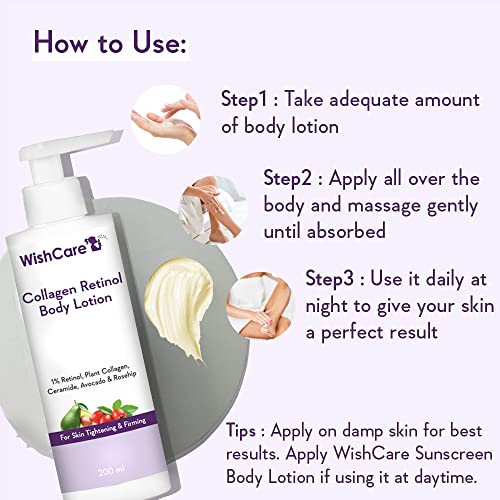 WishCare Collagen 1% Retinol Body Lotion – For Skin Tightening & Firming – With Niacinamide, Ceramide, Rosehip & Avocado – For Men & Women – 200 Ml