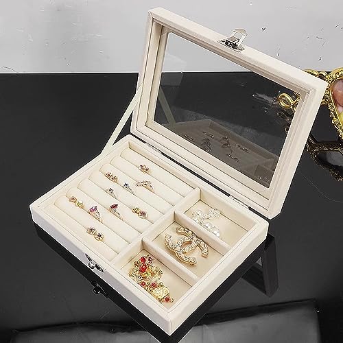 wolpin Jewellery Organiser Exquisite Necklace Earrings Storage Box Case with Dividers Container for Rings, Earrings, Necklace, Lipstick, Makeup Home Organizer, Beige