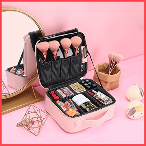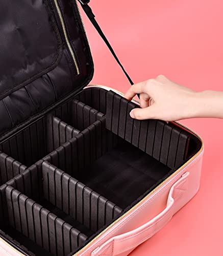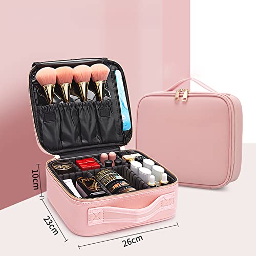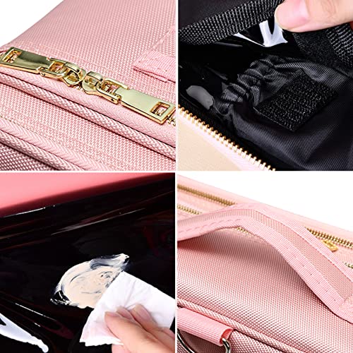Wolpin Professional Cosmetic Makeup Bag Waterproof Oxford Cloth Kit Storage Organizer Travel Toiletry Vanity Bag with Adjustable Compartment, 26 x 23 x 10 cm (Pink)