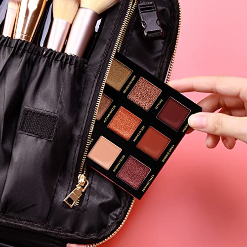 SLOTS FOR MAKEUP BRUSHES: The elastic pockets for makeup brushes can accommodate different sizes of makeup brushes and keep it fixed with the elastic strap around it. The smooth and waterproof PVC area is easy to clean, no need to worry about the color transfer of makeup residual stains.