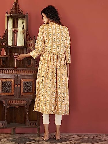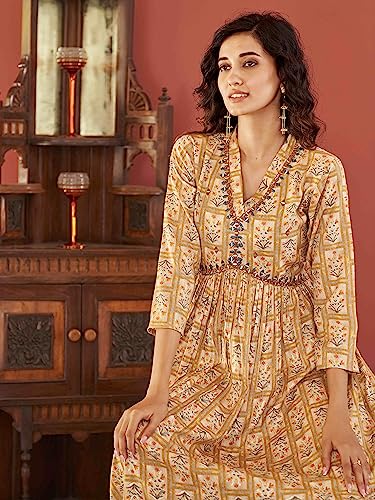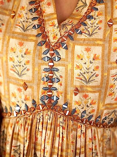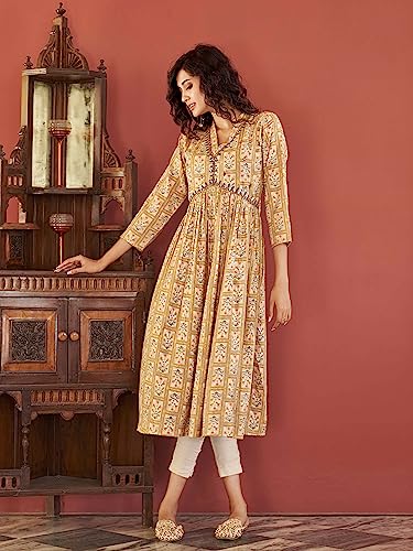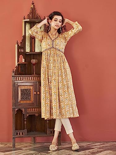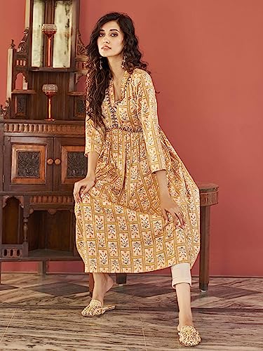 Womanista Women’s Mustard Colour Viscose Rayon Print Alia Bhatt Kurta with Mirror Work